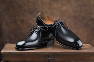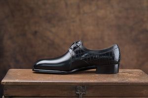 Black Vegano Calf and Embossed Croc with Leather toe puff and heel counter |