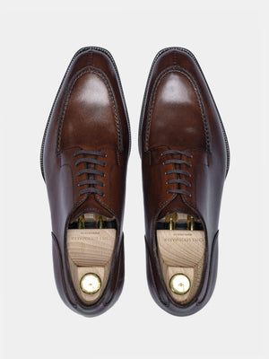 The iconic Split Toe Derby, featuring pie-crust apron intricately stitched together. Hand lasted and 100% hand welted on our V last with French Vegano calf from Tannerie d'Annonay.
