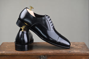 Updated on the 42 last, the C5 is reintroduced with longer vamp and soft toe. The shoe features a single (close channel) leather outsole with a tight, bevelled waist, and is welted all the way through to the heels.