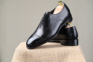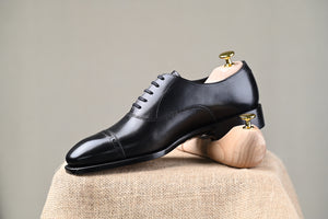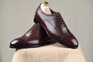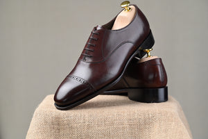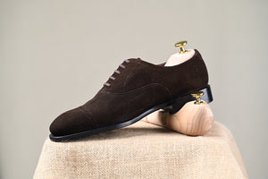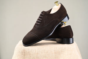 Our iteration of the classic punched cap toe. The Camus comes in 3 colours on our signature V last, using fine Italian calfskin or suede.