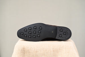 With a gorgeous soft square shape and a slight chisel, the new V last has a balanced proportion with a neutral instep and heel fitting. The shoe features a single (close channel) leather outsole with a tight, bevelled waist, and is welted all the way through to the heels. A blend of gentle curves and details.