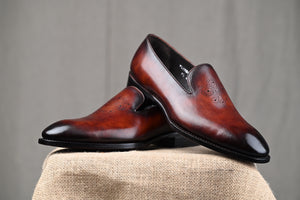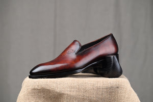 Inspired from our archives, the Florentine is a wholecut loafer embellished with a floating medallion on the vamp. Something not commonly seen. It is crafted on fine Italian crust calf with hand applied patina.