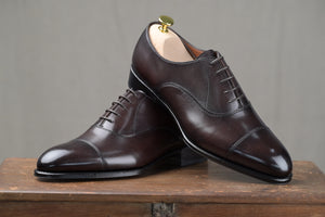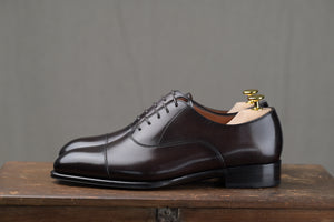 All hand welted models feature leather toe puff and heel counters. The shoe features a single (close channel) leather outsole with a tight, bevelled waist, and is welted all the way through to the heels. All our shoes can be resoled if required.