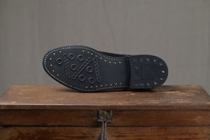 Inspired by hunting derby, the Hendrich is imagined in a mixture of smooth and emboss calf, along with supple suede on the casual 7913 last (EEE width). Goodyear welted on a vintage style rubber outsole. All our shoes can be resoled if required.