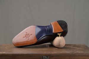 The Lucien is 100% handwelted. The shoe features a single (close channel) leather outsole with a tight, bevelled waist, and is welted all the way through to the heels.
