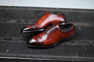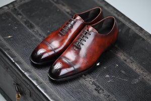 Inspired from our archives, the Rennes is our take on the regular wholecut. Adorned with a cap toe and medallion, it is crafted on fine Italian crust calf with hand applied patina.