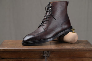 An iconic design for the discerning, the split toe derby reimagined into a boot is a perfect match for the seasonal traveller. This pair features hatch grain calf leather from Italy and is welted 360 degrees with a storm welt. Stitched onto a sturdy 100% rubber ridgeway sole. All our shoes can be resoled if required.
