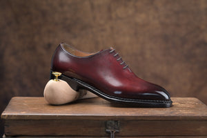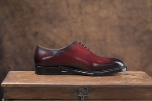 Italy crust in Burgundy Patina with Leather toe puff and heel counter |