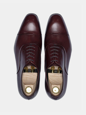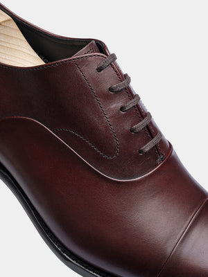 Your classic cap toe oxford, refined with Swan neck detailing and folded seam for that minimalist, seamless look. Hand lasted and 100% hand welted on our V last with French Vegano calf from Tannerie d'Annonay.